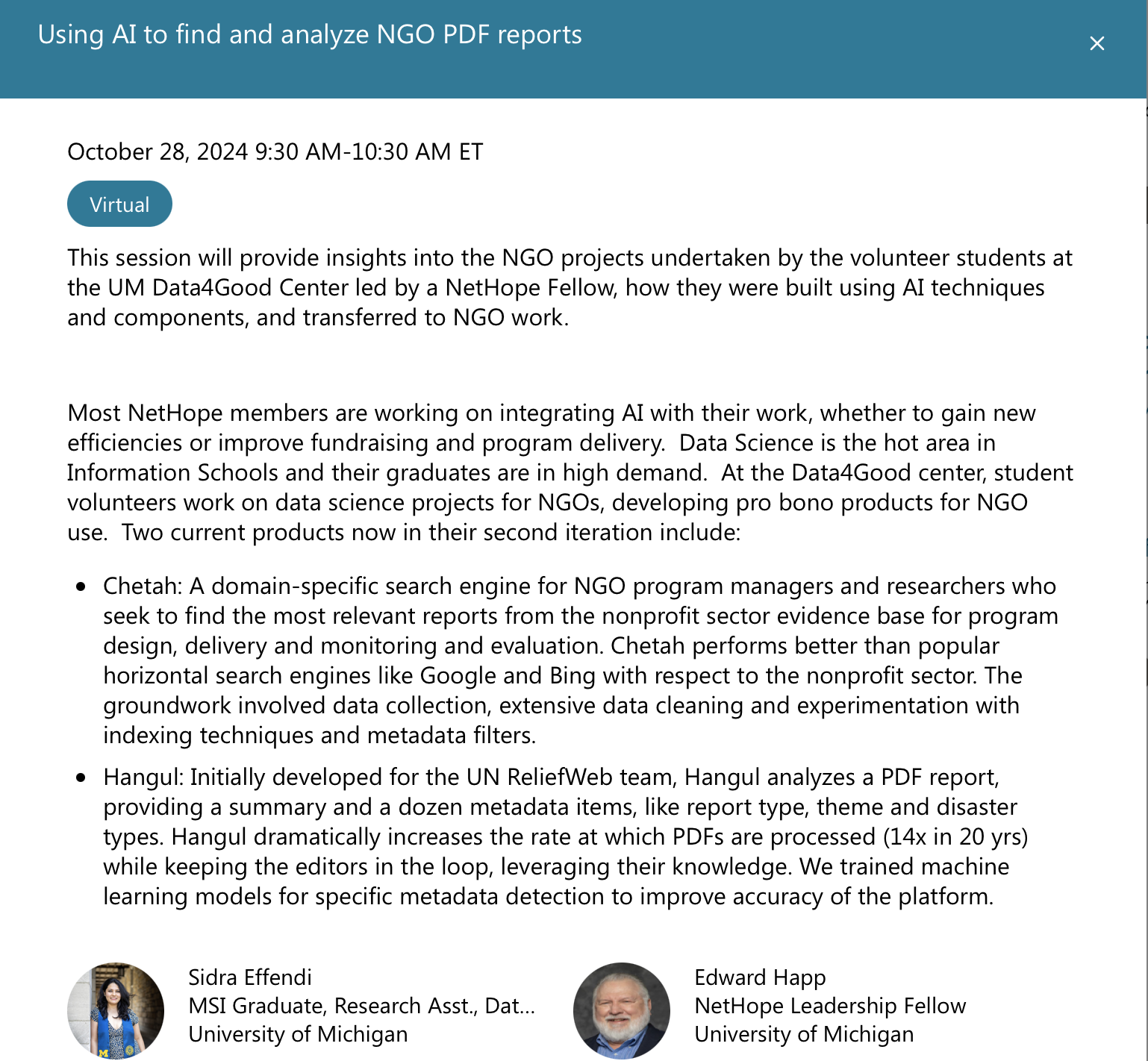 Delivered a talk at Nethope Global Summmit 2024 28th October.