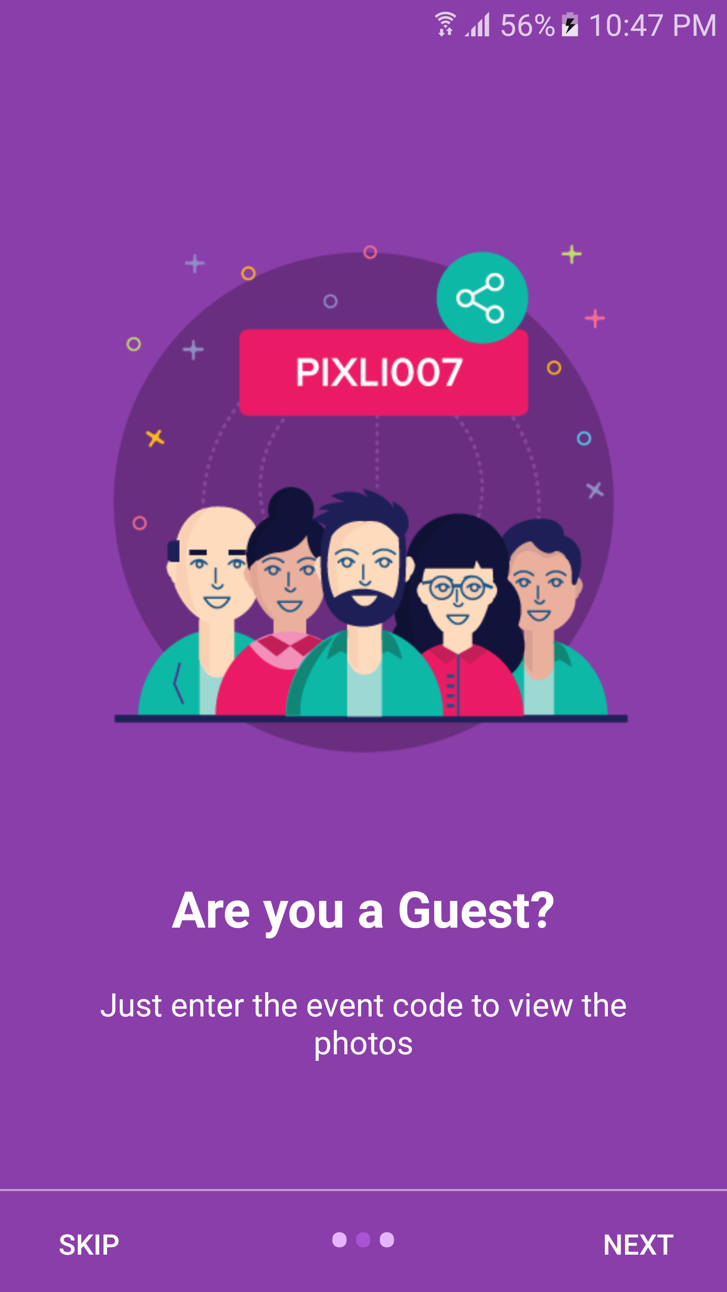 Pixli helps you capture all your guests’ photos in one online album. Share, collect photos from every guest in the event so you never miss a moment. You need to just Sign Up and create an event to generate a unique album code. Guests can upload pics by entering the unique code via app. Guests also get to view and download every photo shared during the event. You can create different albums for different occasions like wedding, anniversary, tour, party or any sort of event. Pixli aims to provide you the best photo sharing experience so that you never miss out on photos which you can cherish for your whole life.